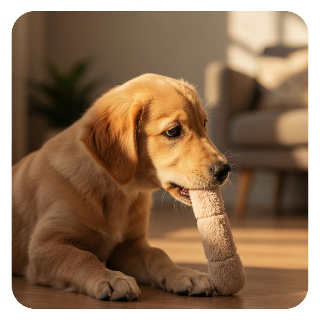 Ein unausgelasteter Welpe sucht sich Beschäftigung – manchmal leider an Händen, Hosenbeinen oder Möbeln. Sorge für ausreichend Spiel und Beschäftigung. Ideen dazu findest du auf Welpe Macht Alles Kaputt.