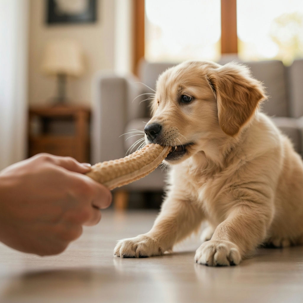 - Alternativen bieten: Kauartikel und Spielzeug helfen beim Zahnwechsel und lenken vom Beißen ab.
