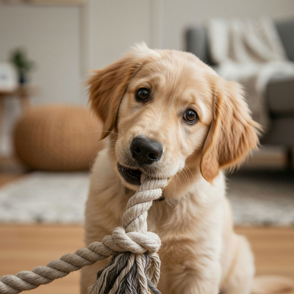 Was mache ich, wenn mein Welpe auf Möbel oder Kleidung beißt?