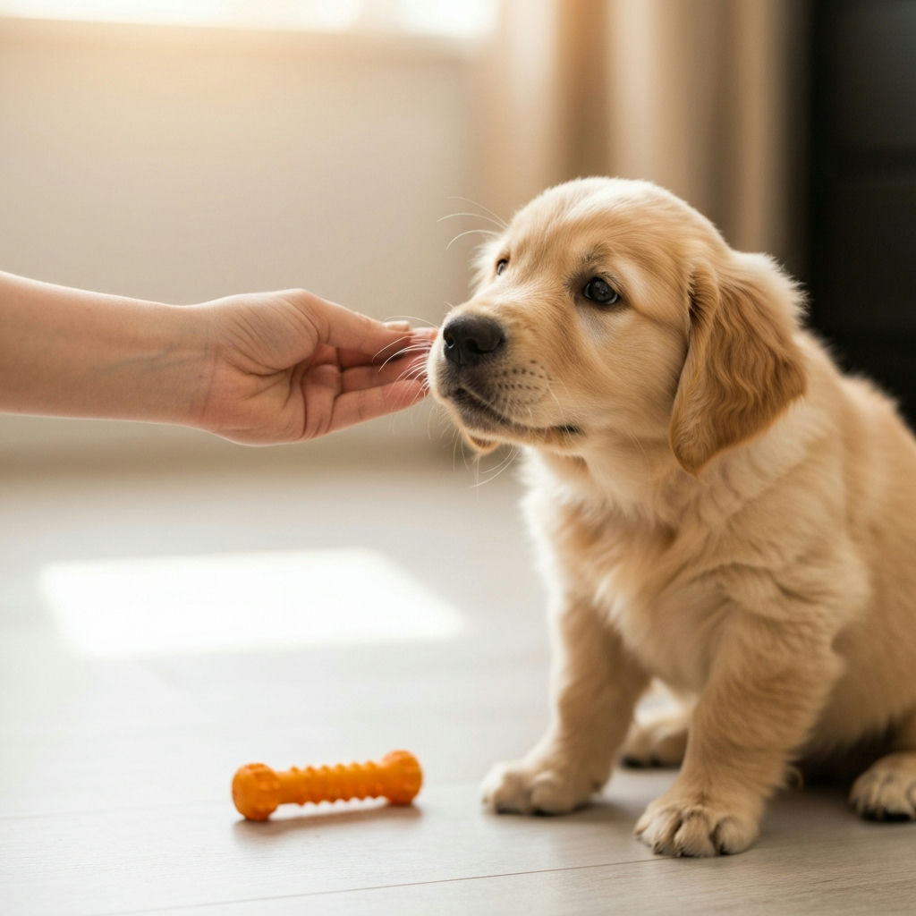 Biete deinem Welpen ausreichend geeignetes Kauspielzeug an. Besonders beim Zahnen verschafft das Erleichterung und lenkt von deinen Händen ab. Achte darauf, dass das Spielzeug sicher und für Welpen geeignet ist.