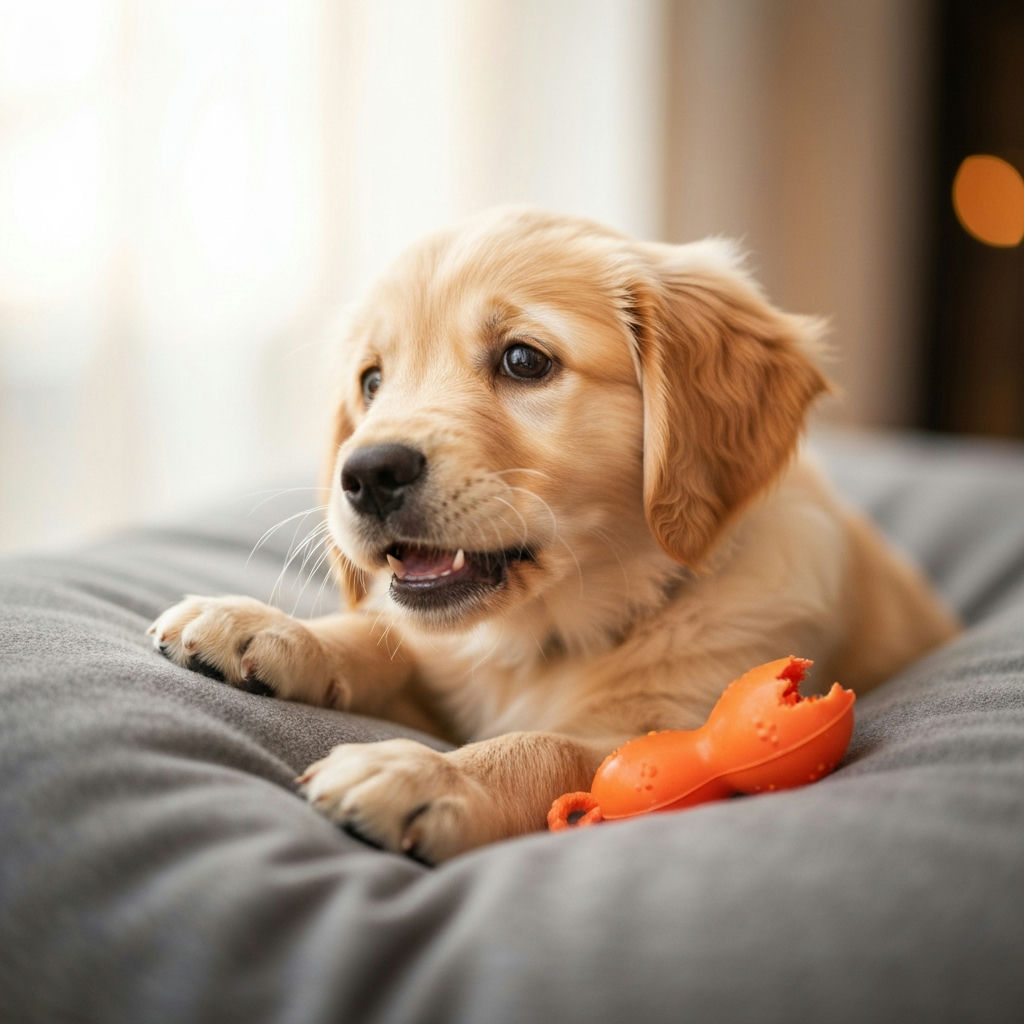 - Biete deinem Welpen verschiedene Kauartikel an, besonders während des Zahnwechsels.