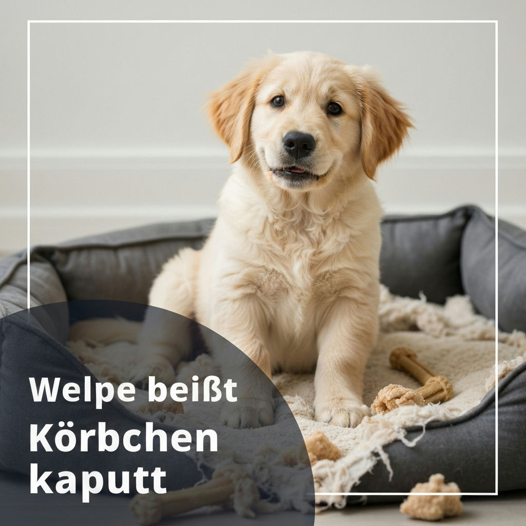 Das Zerstören des Körbchens ist meist ein Mix aus Zahnungsschmerzen, Langeweile und Erkundungstrieb. Welpen entdecken ihre Welt mit dem Maul, besonders beim Zahnwechsel. Mit ausreichend Beschäftigung und passenden Kauartikeln lässt sich das Verhalten steuern.