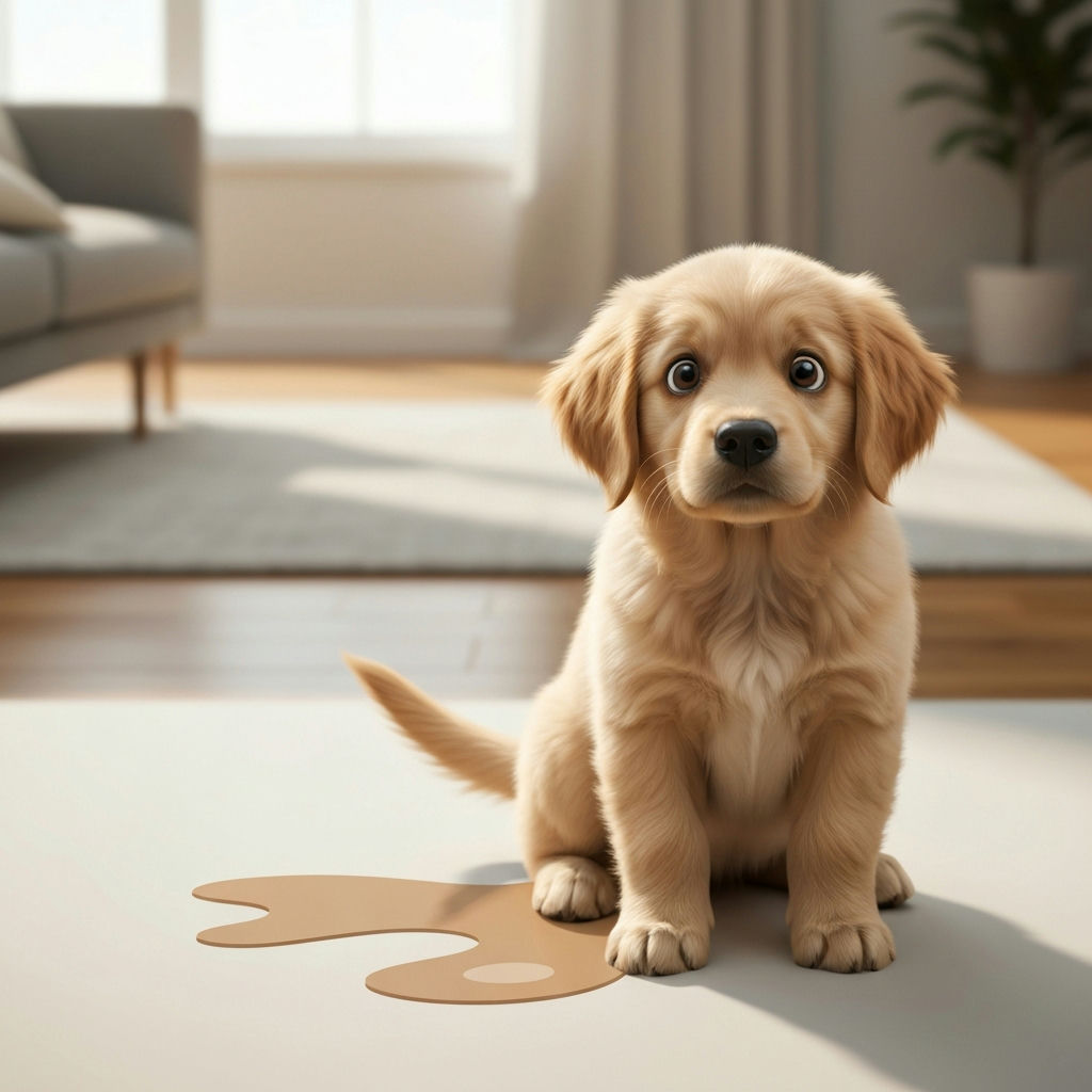 Welpen müssen ihre Blase noch kontrollieren lernen. Gerade anfangs passiert es oft, dass sie direkt nach dem Spaziergang oder Spielen draußen wieder ins Haus kommen – und dann auf den Teppich oder Boden machen. Das kann verschiedene Gründe haben: