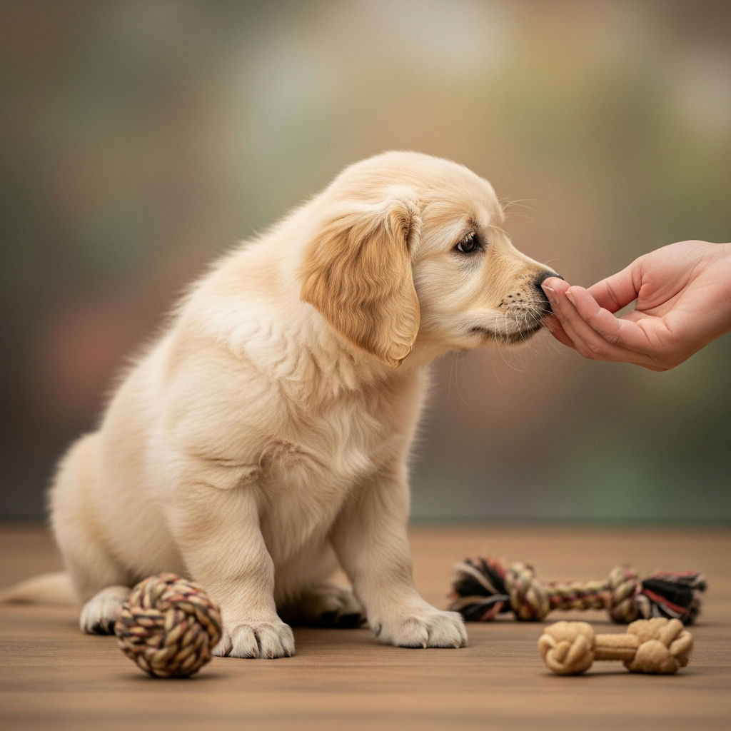 - Wegzerren der Hand: Wenn du deine Hand schnell zurückziehst, animiert das den Welpen oft dazu, noch fester zuzubeißen.
